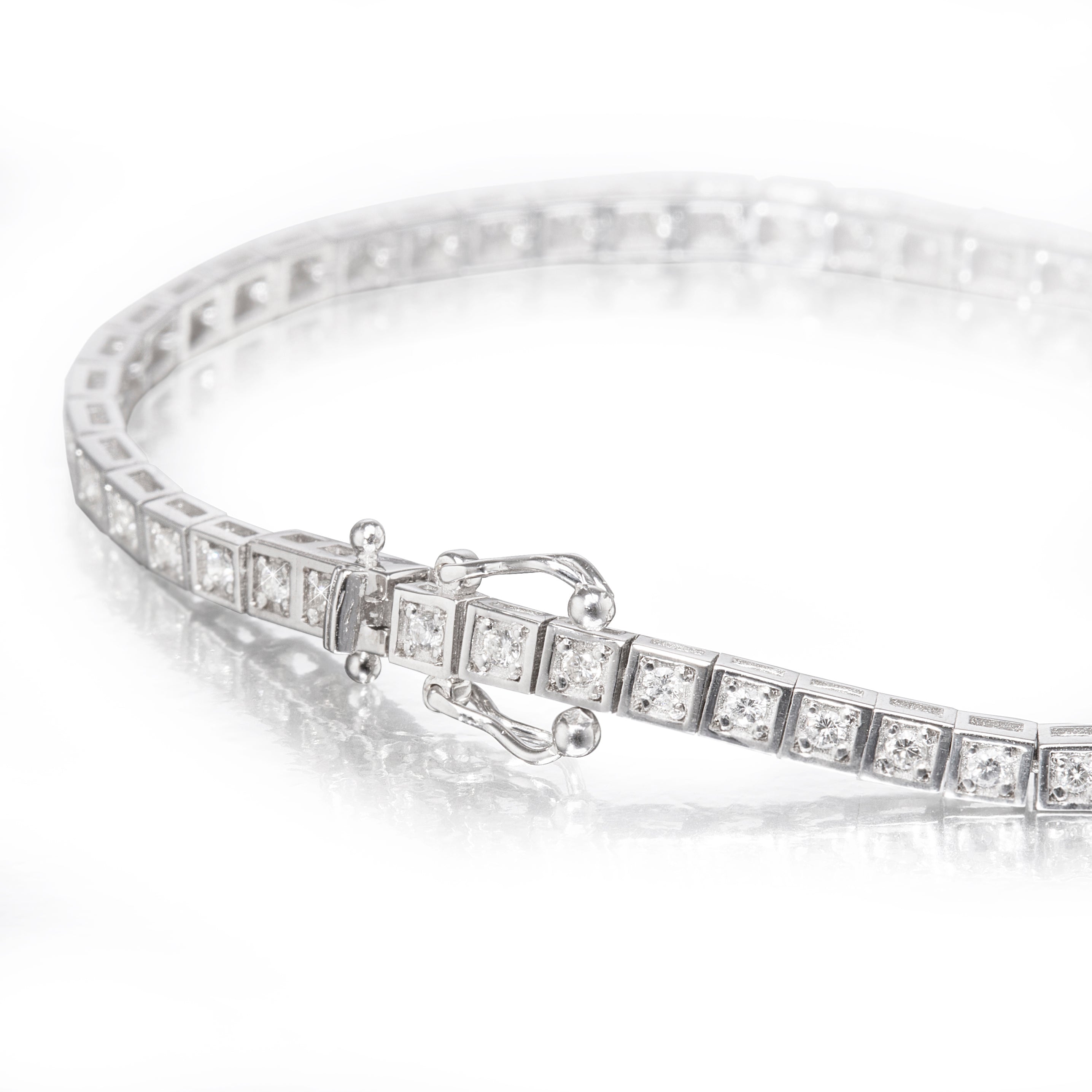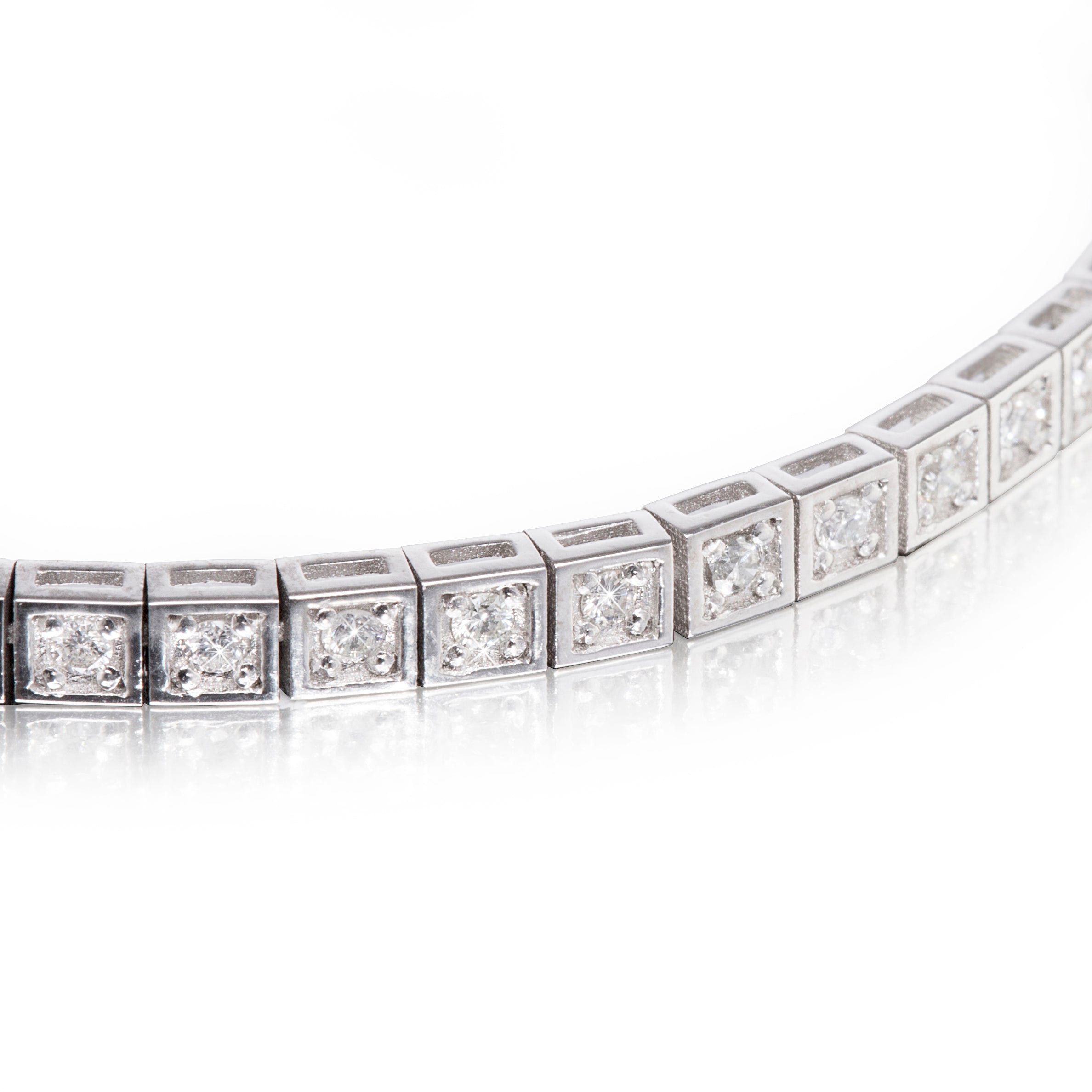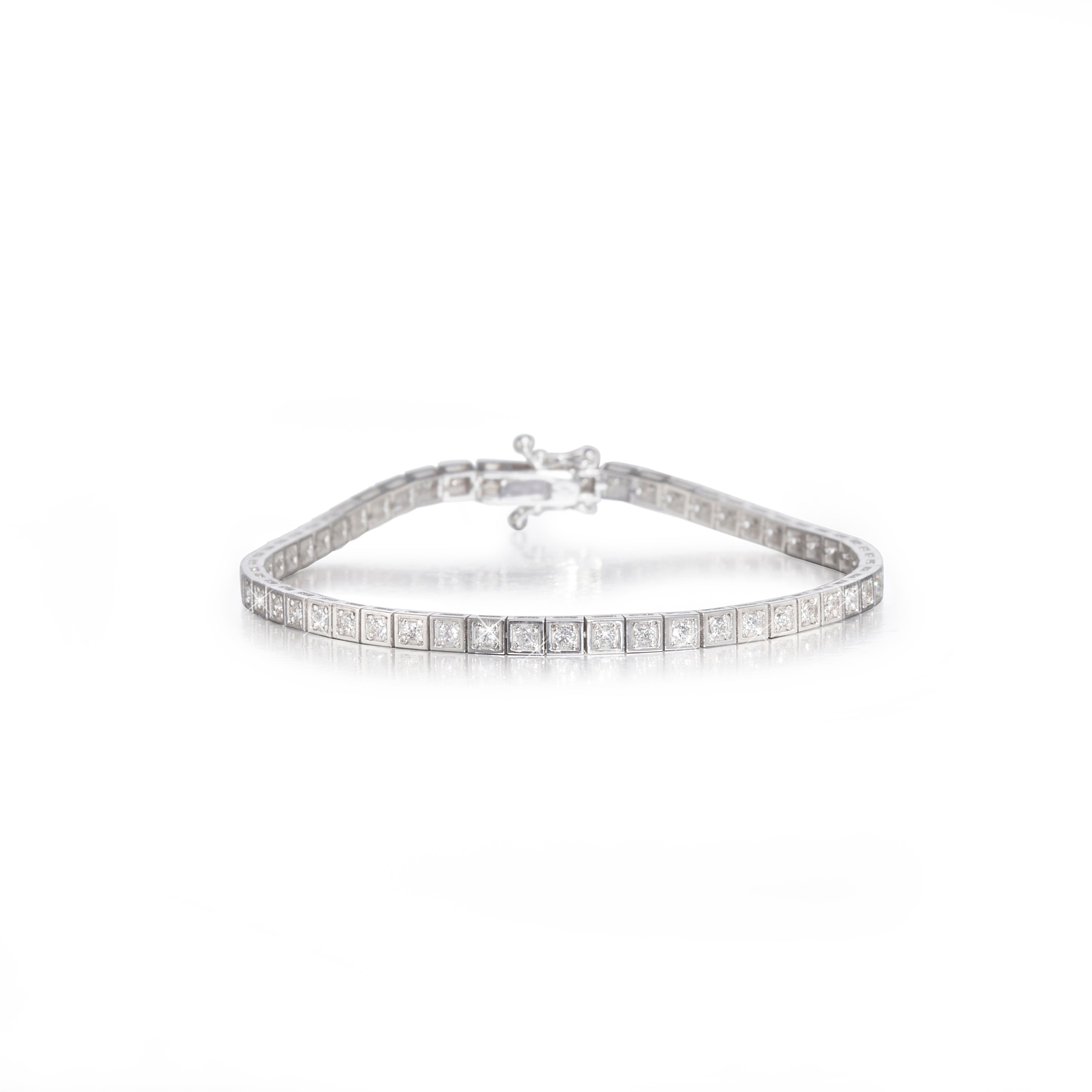 18ct White Gold Square Set Diamond Tennis Bracelet set with: