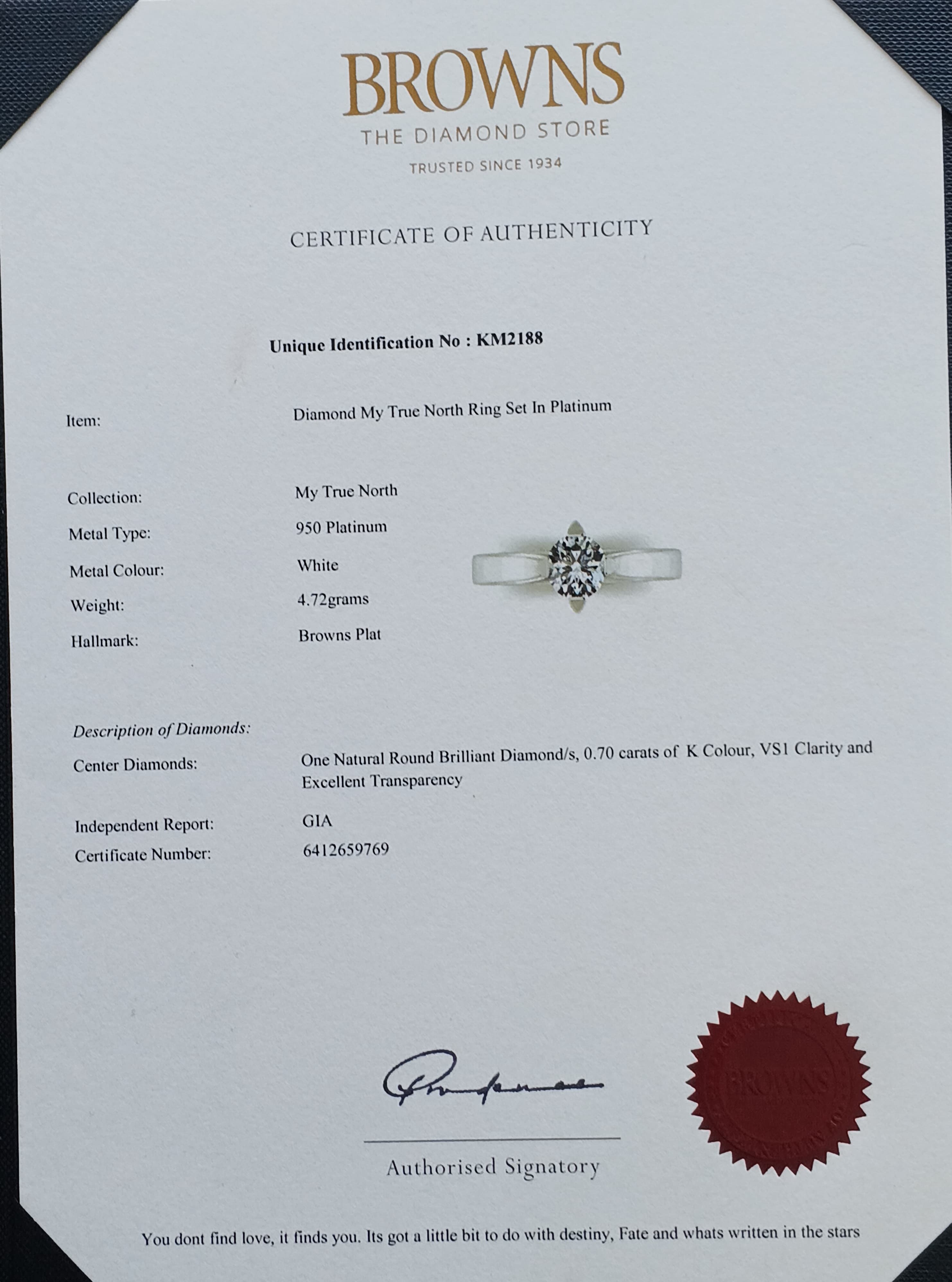 Center: 1 x GIA Certified Round Brilliant Cut Diamond of 0.70cts K VS1