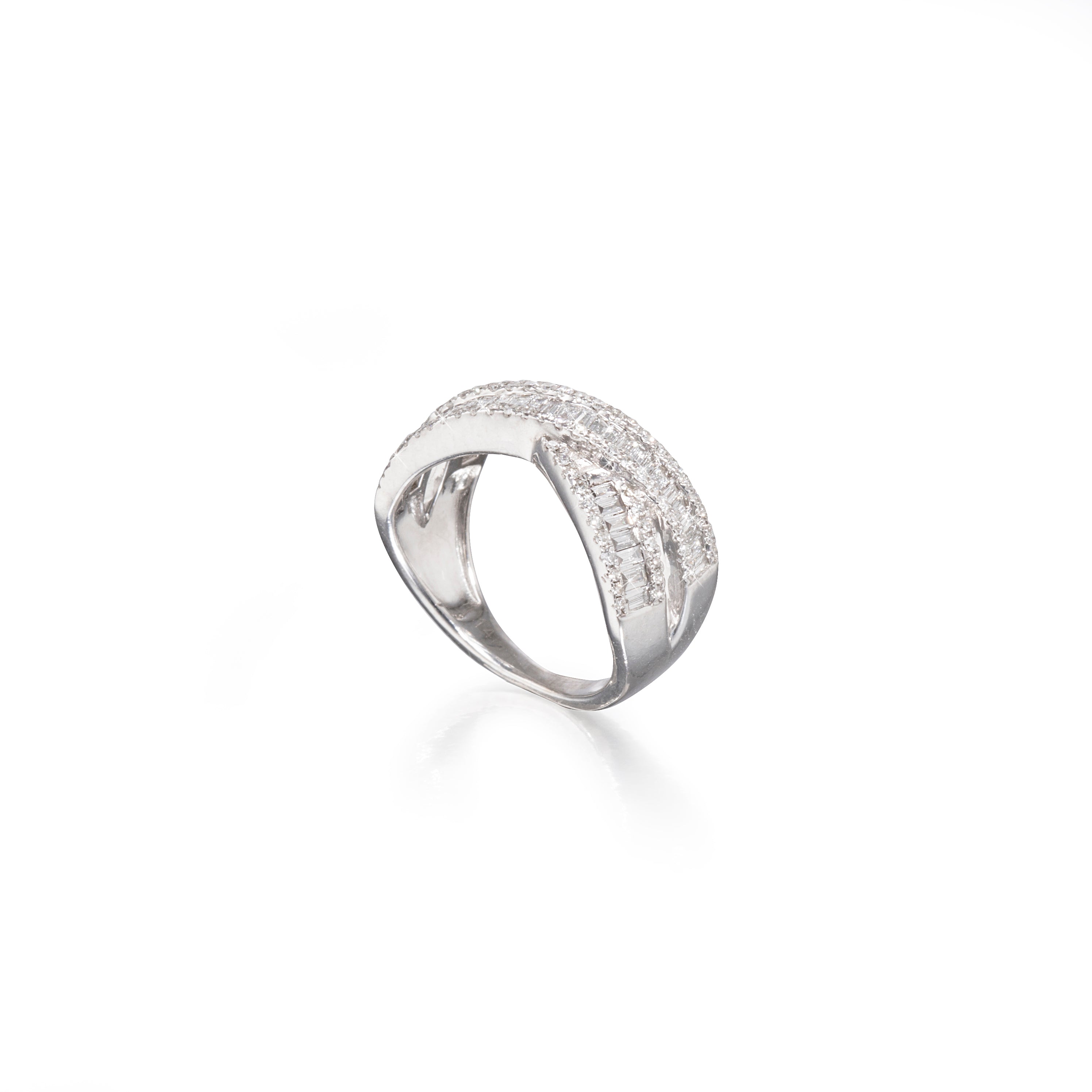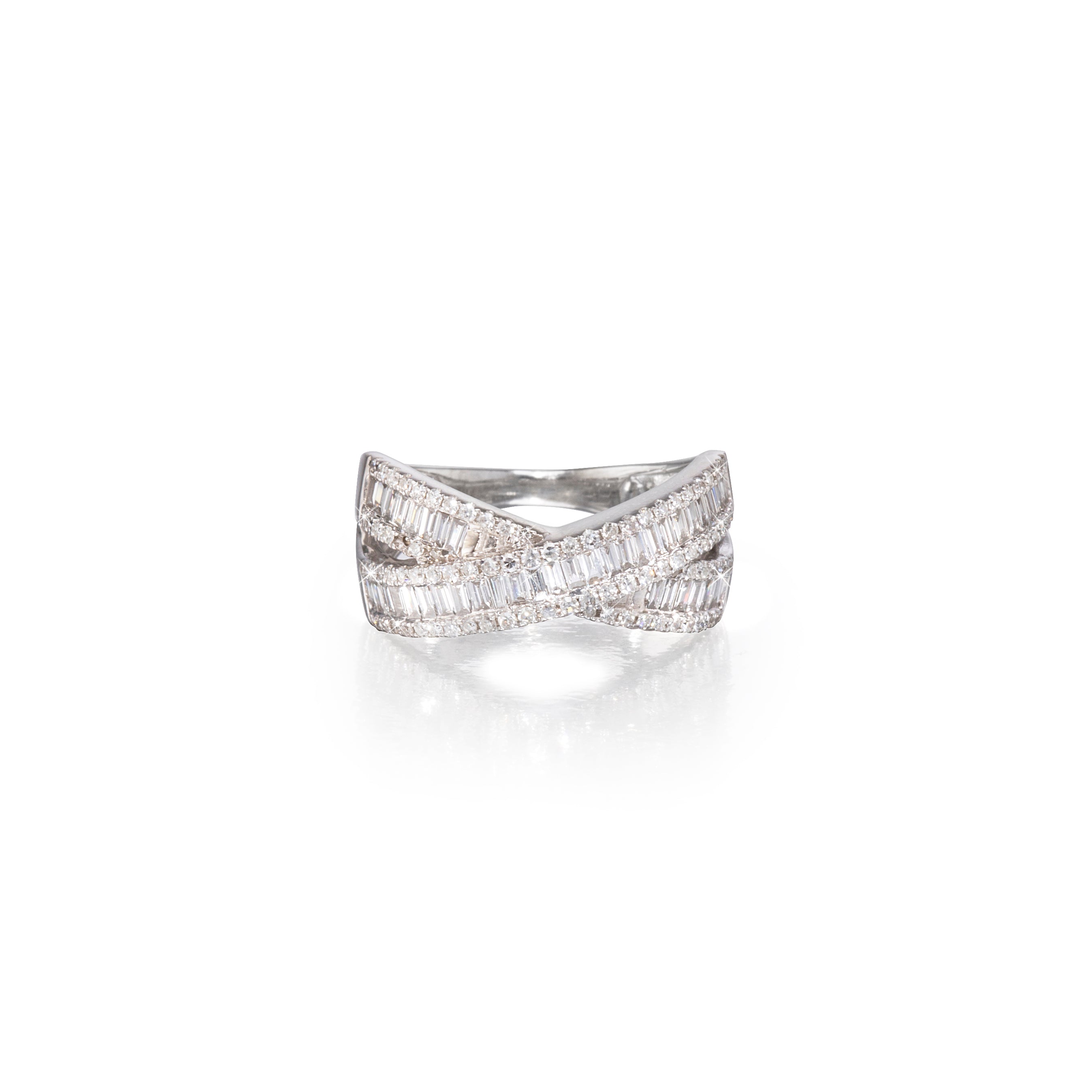 14ct White Gold Diamond Cross Over Dress Ring set with:
