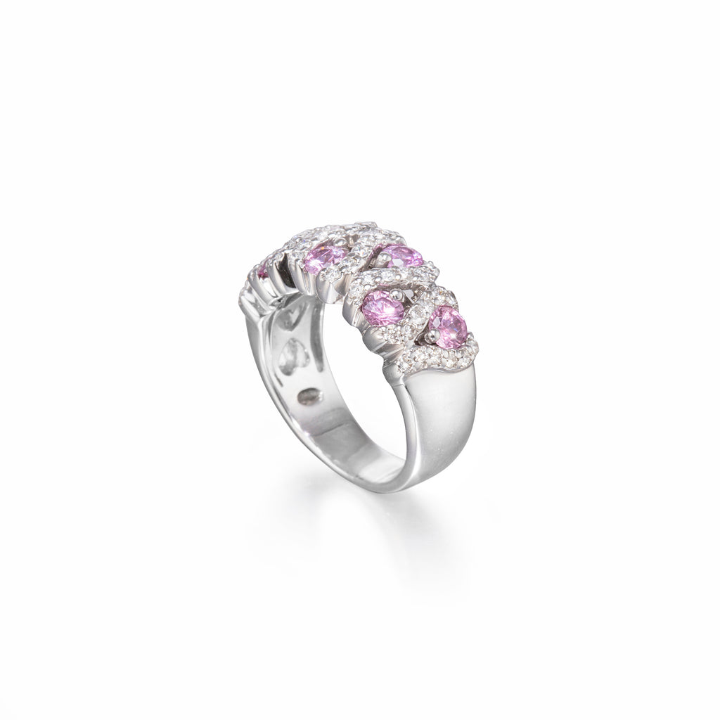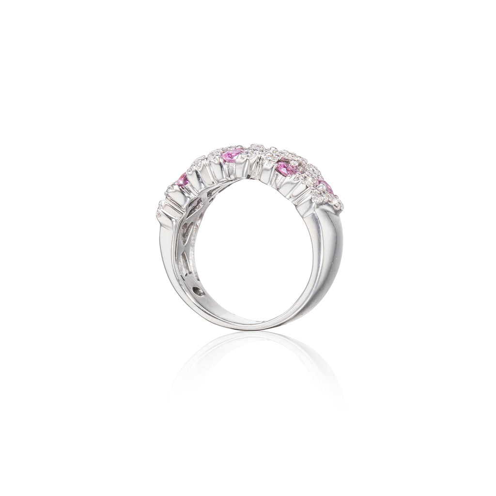 18ct White Gold Pink Sapphire and Diamond Dress Ring set with: