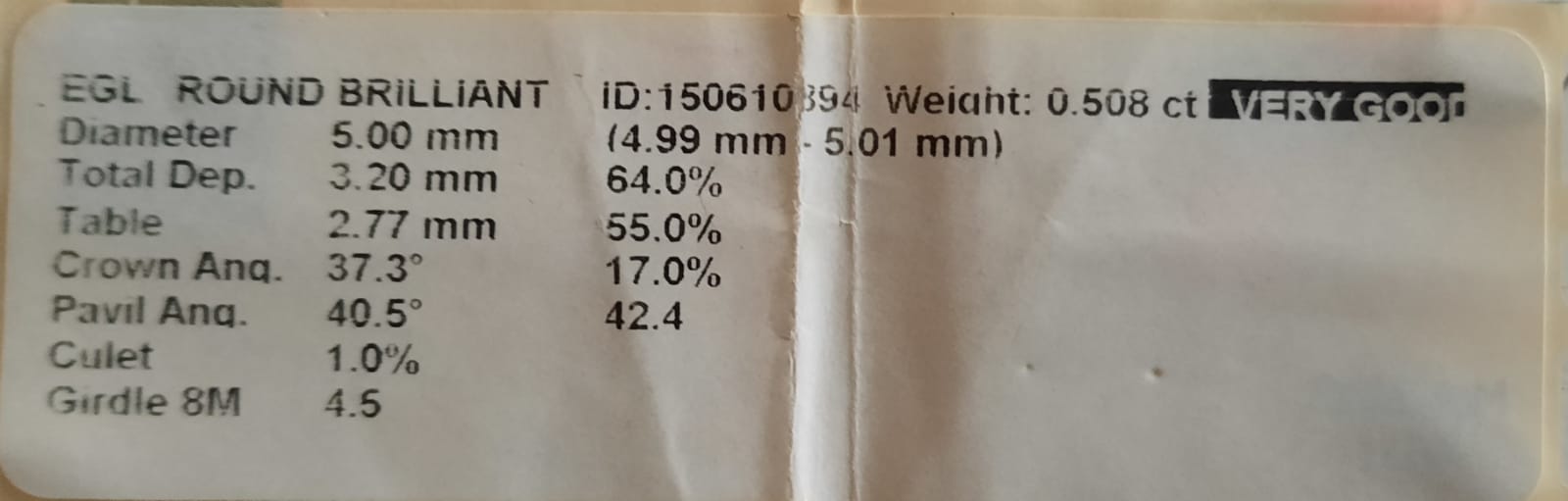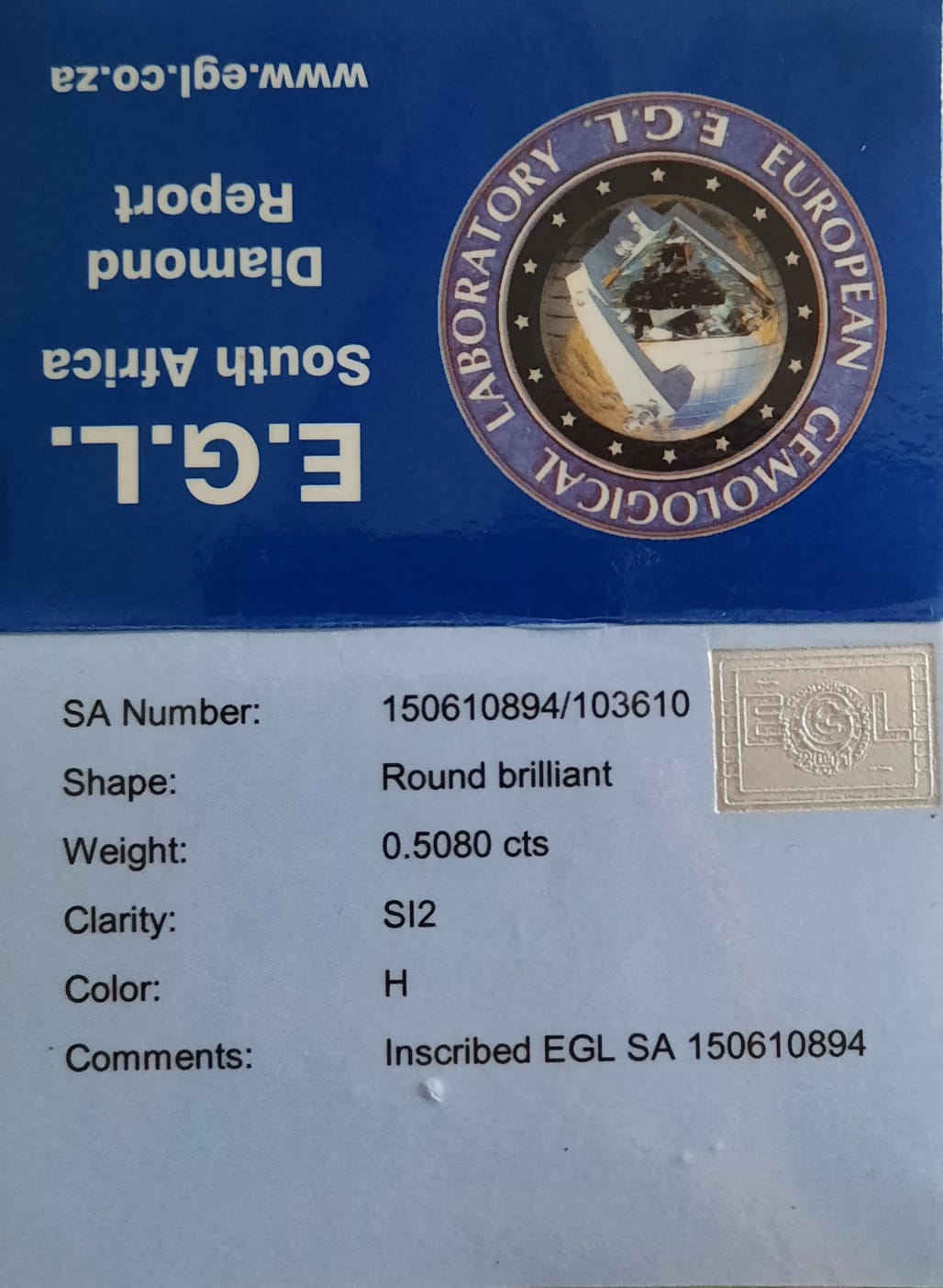 Round Brilliant Cut Diamond. 0.5080cts H SI2
