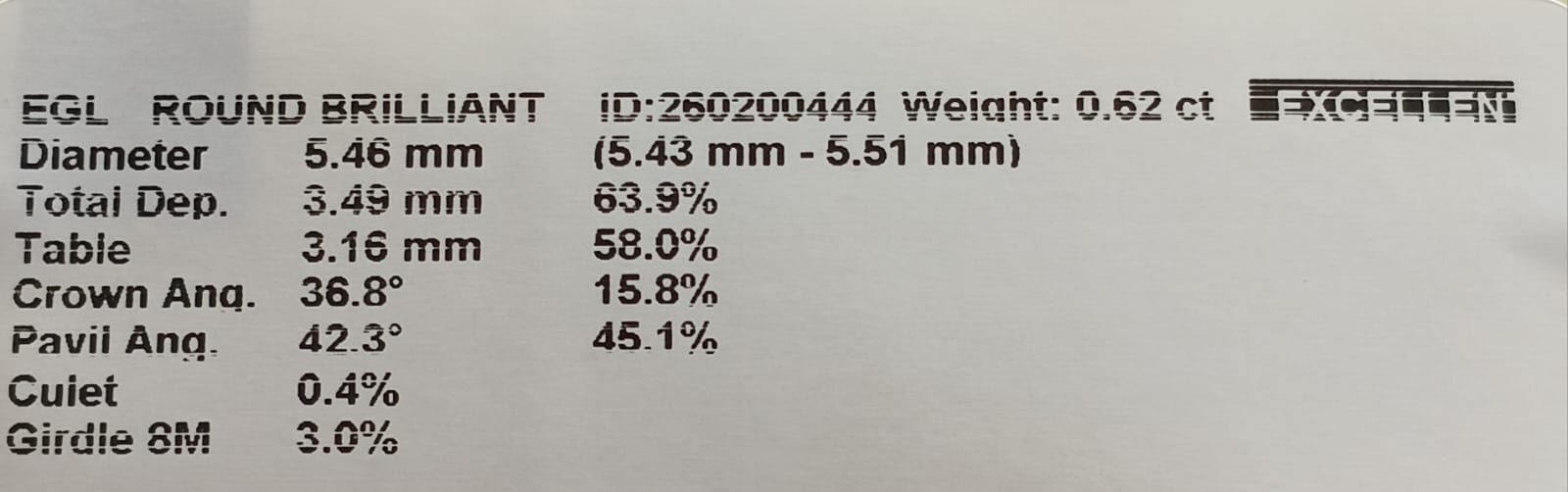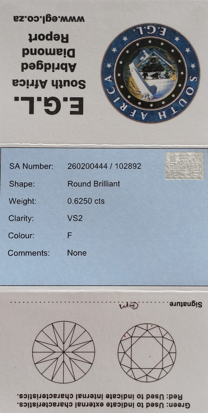 Round Brilliant Cut Diamond. 0.6250cts F VS2