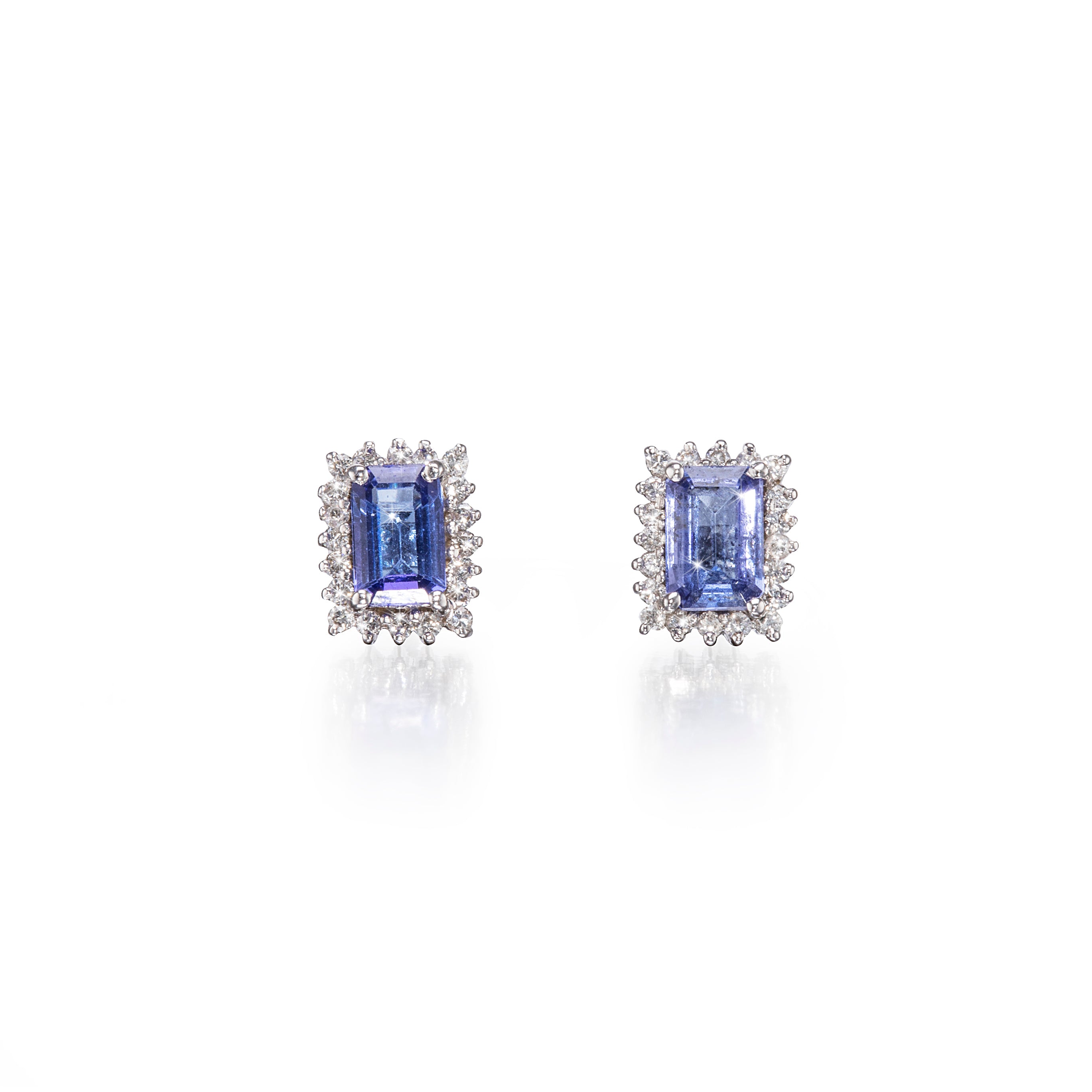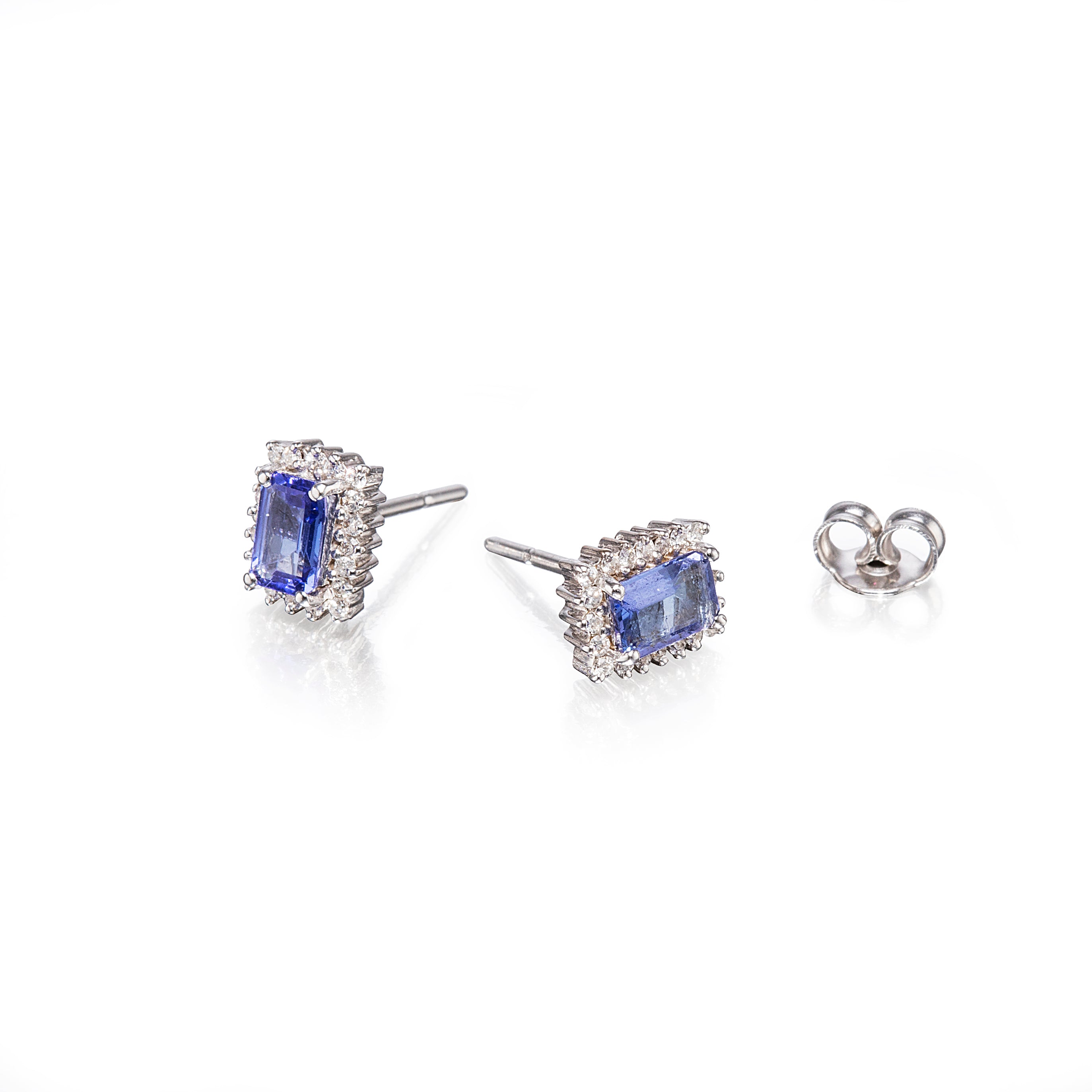 18ct White Gold Emerald Cut Tanzanite and Diamond Earrings