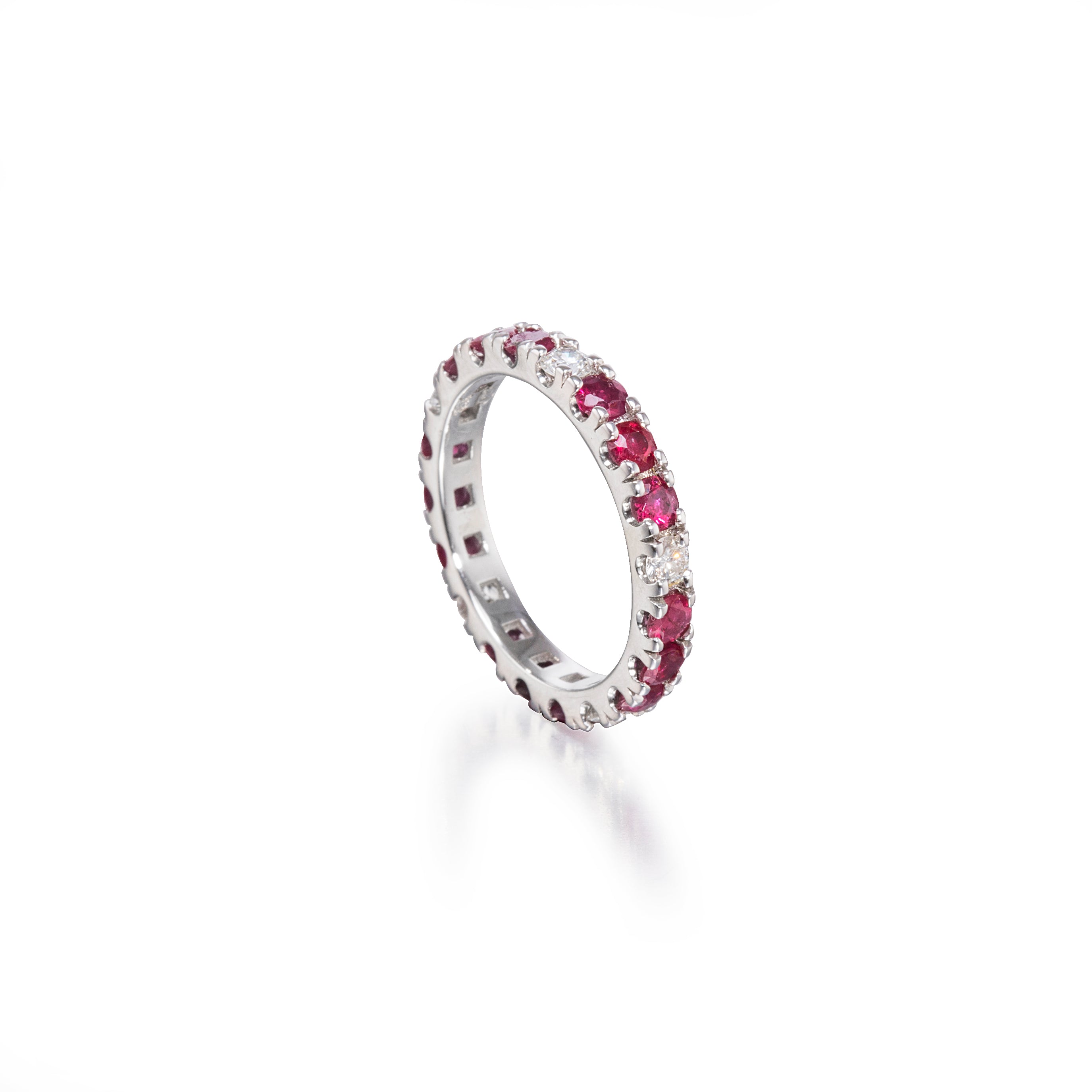 18ct White Gold Full Ruby and Diamond Eternity Ring set with: