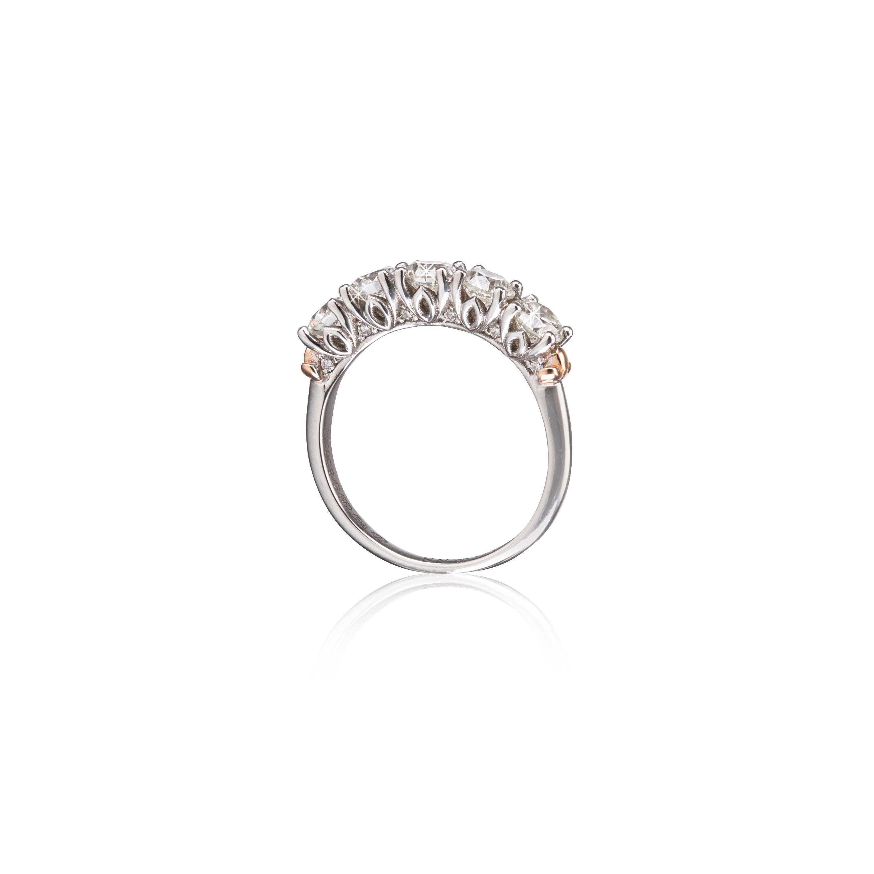 Browns Platinum and 18ct Rose Gold 5 Stone Diamond Protea Eternity Ring with Whispering Angel Accent set with: 5 x Round Brilliant Cut Diamonds each approx. 0.30cts H SI2 Sides: 5 x Round Brilliant Cut Diamonds each approx. 0.005cts D-I, VS-SI |