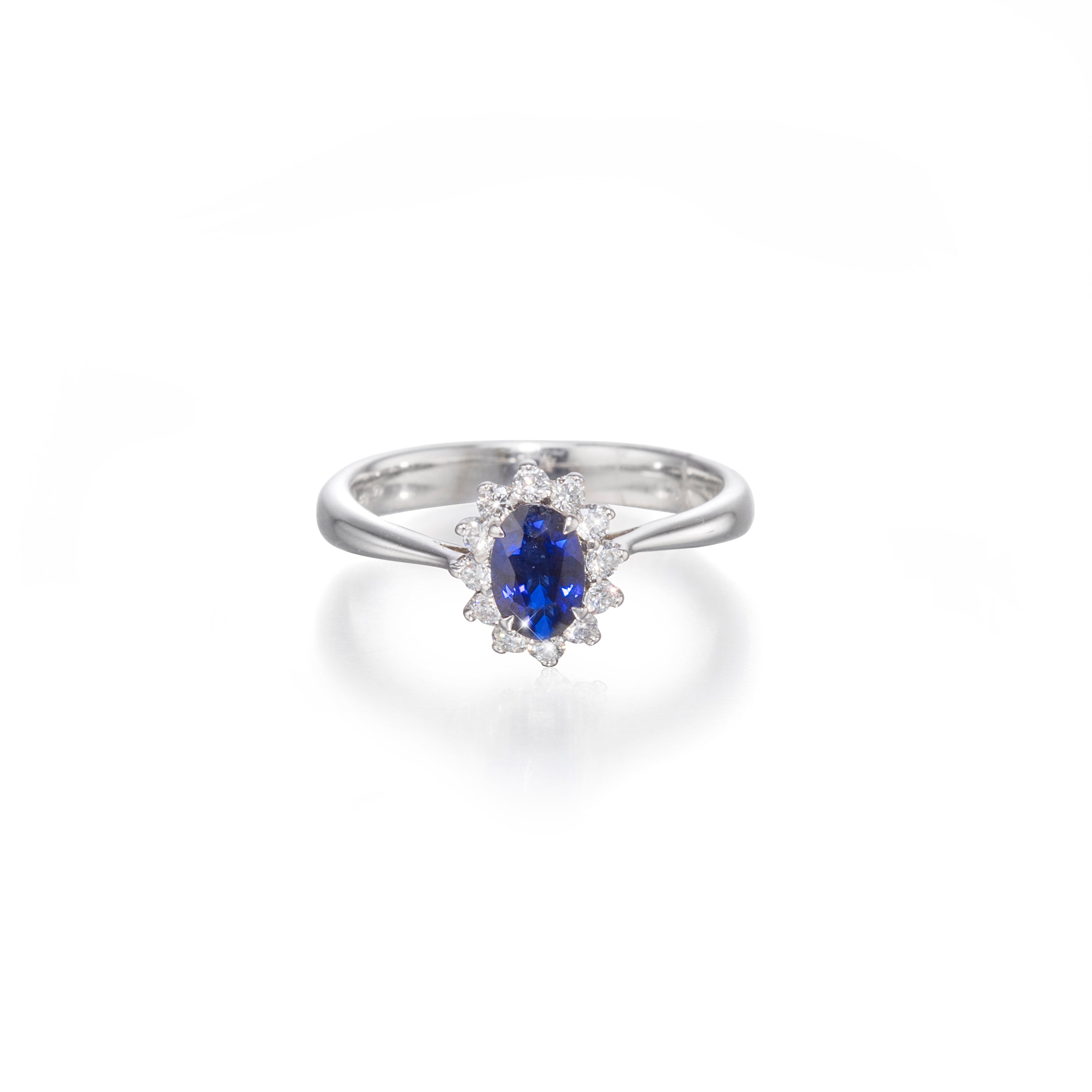 Browns 18ct White Gold Halo Diamond Sapphire Ring :