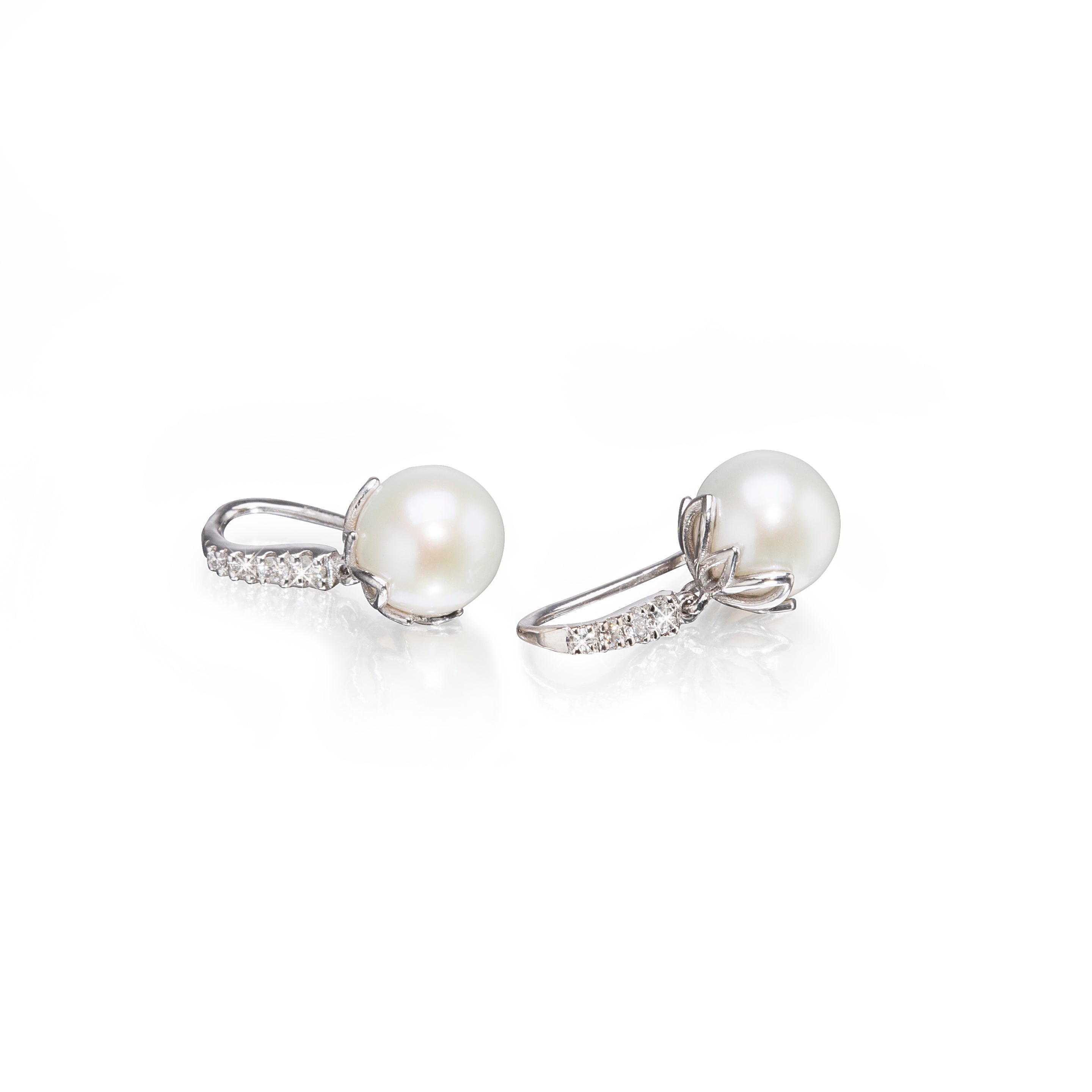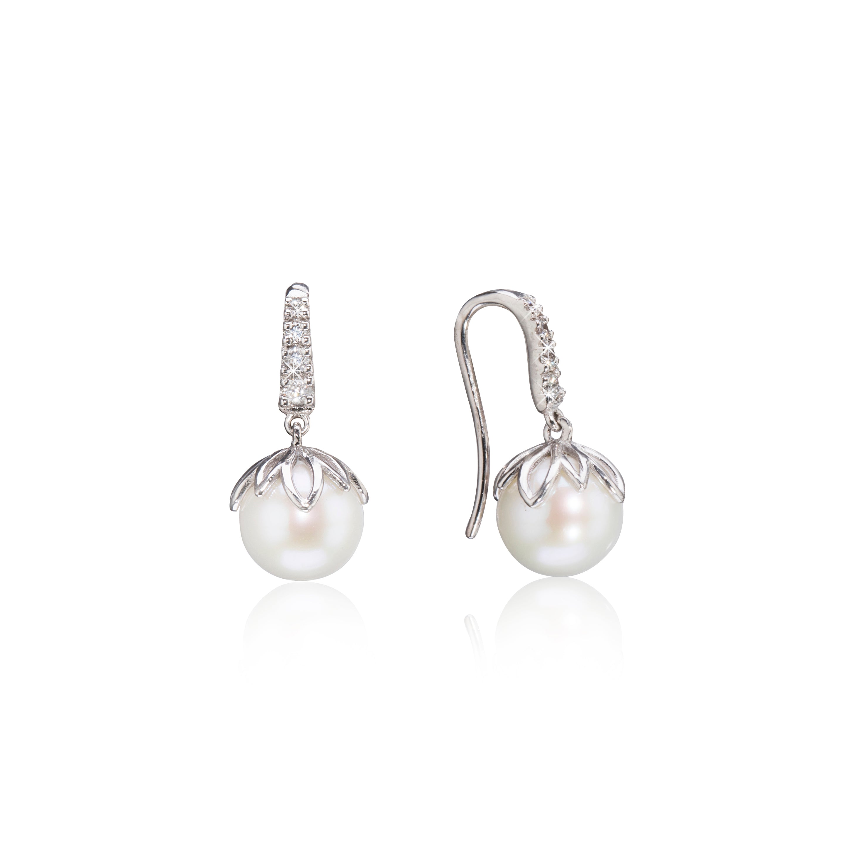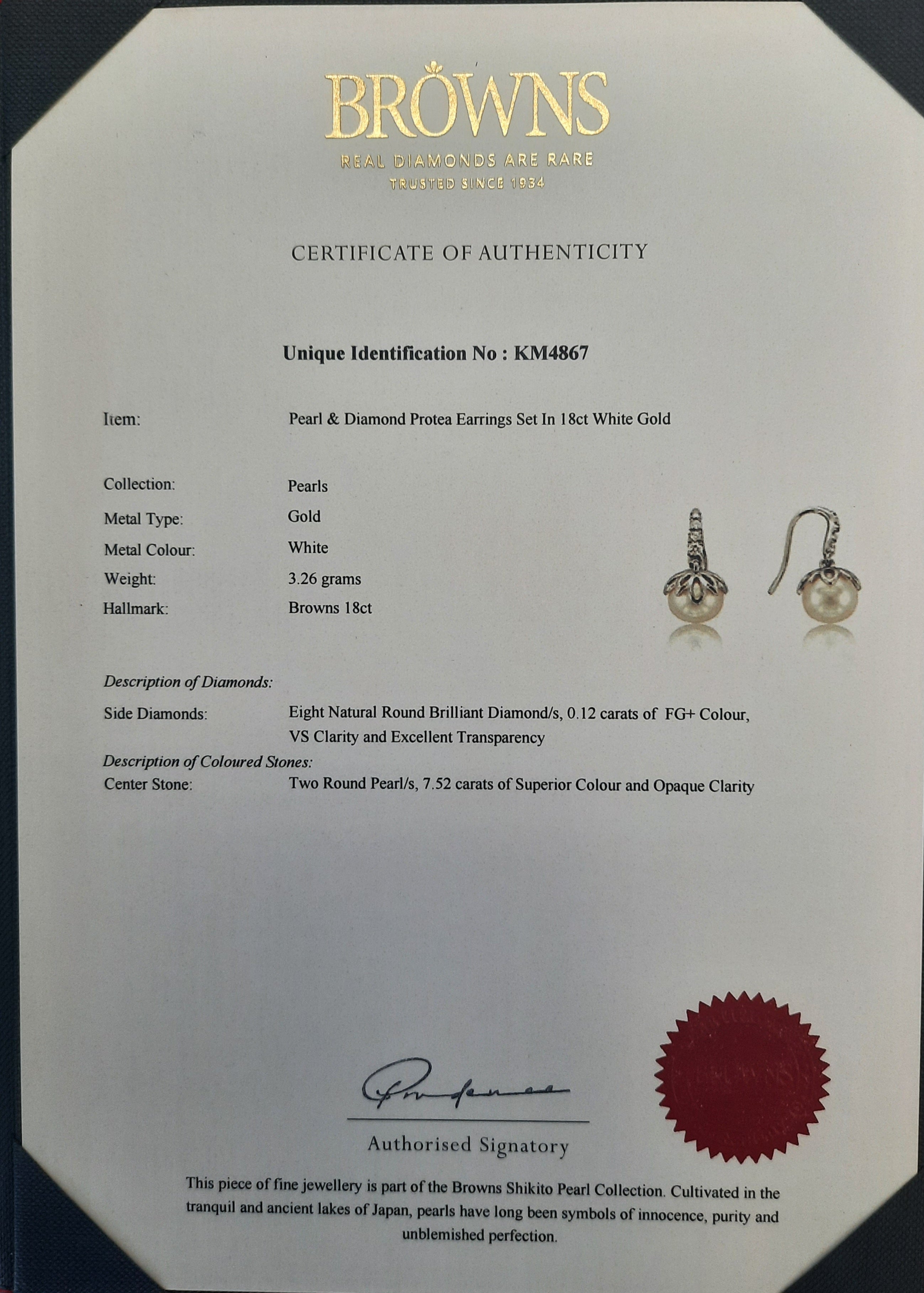 Browns 18ct White Gold Pearl and Diamond Protea Earrings each set with:
