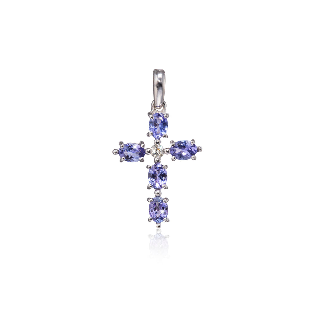 9ct White Gold Tanzanite Diamond Cross Pendant