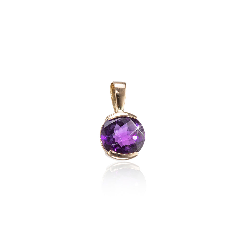 14ct Yellow Gold Pendant set with a Round Cut Amethyst