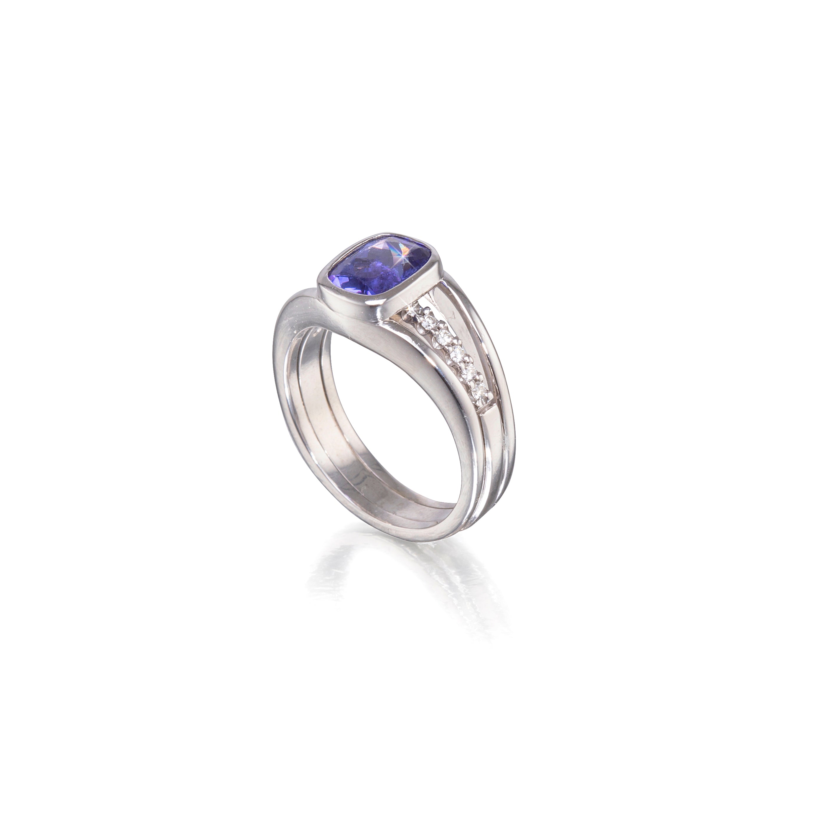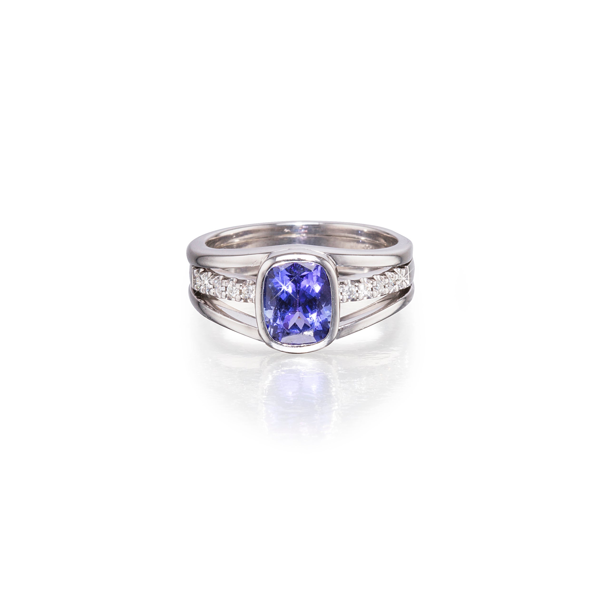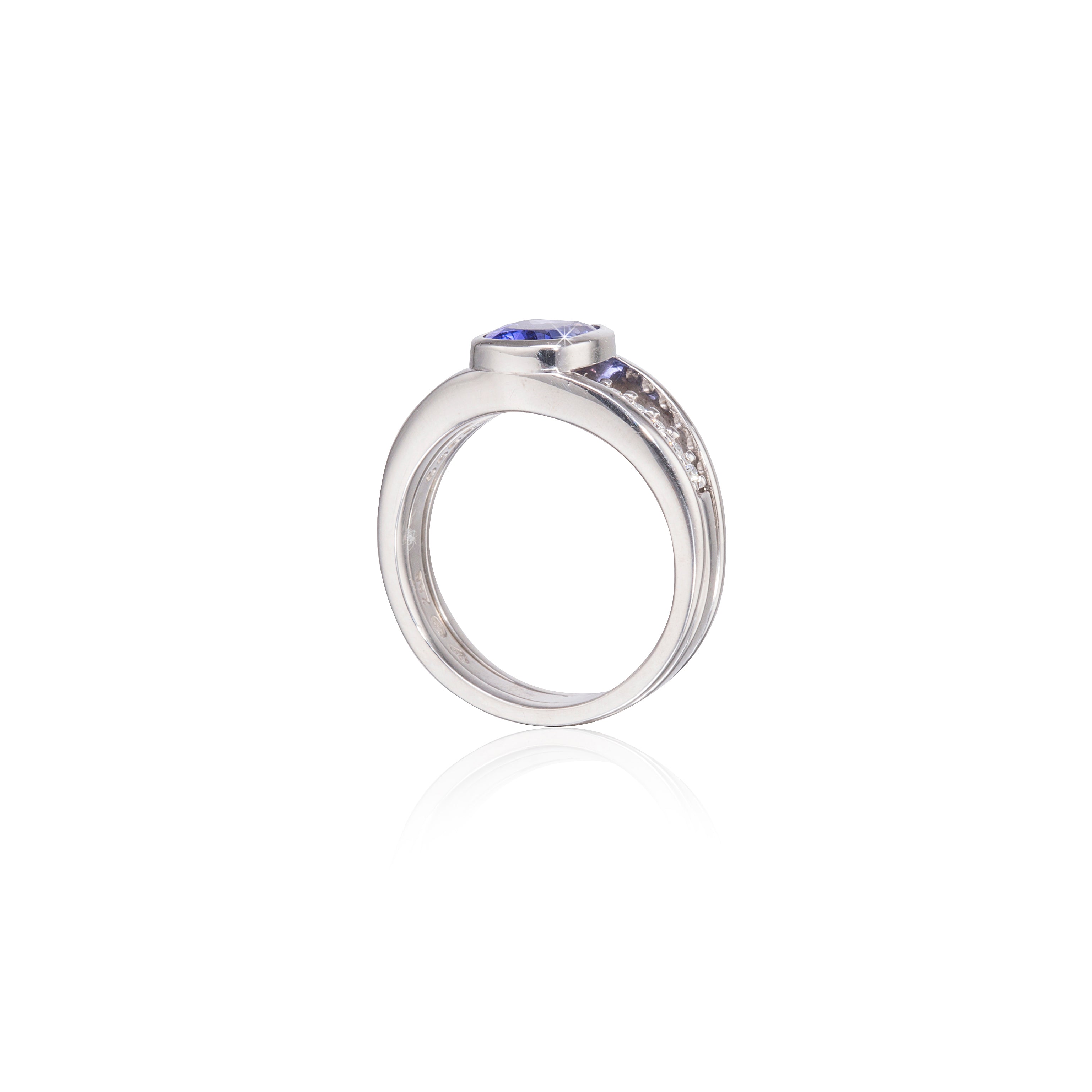 18ct White Gold Tube Setting Tanzanite and Diamond Ring