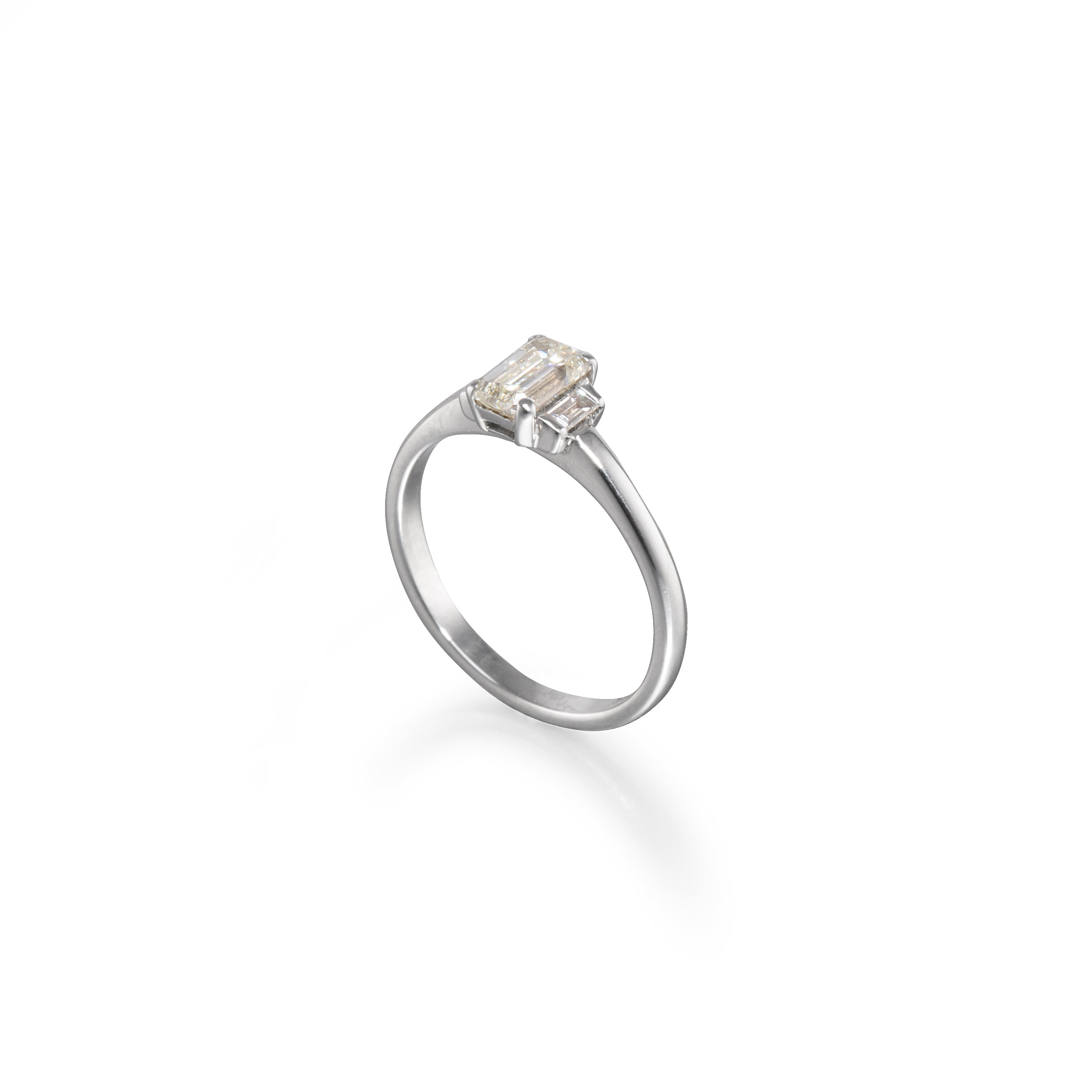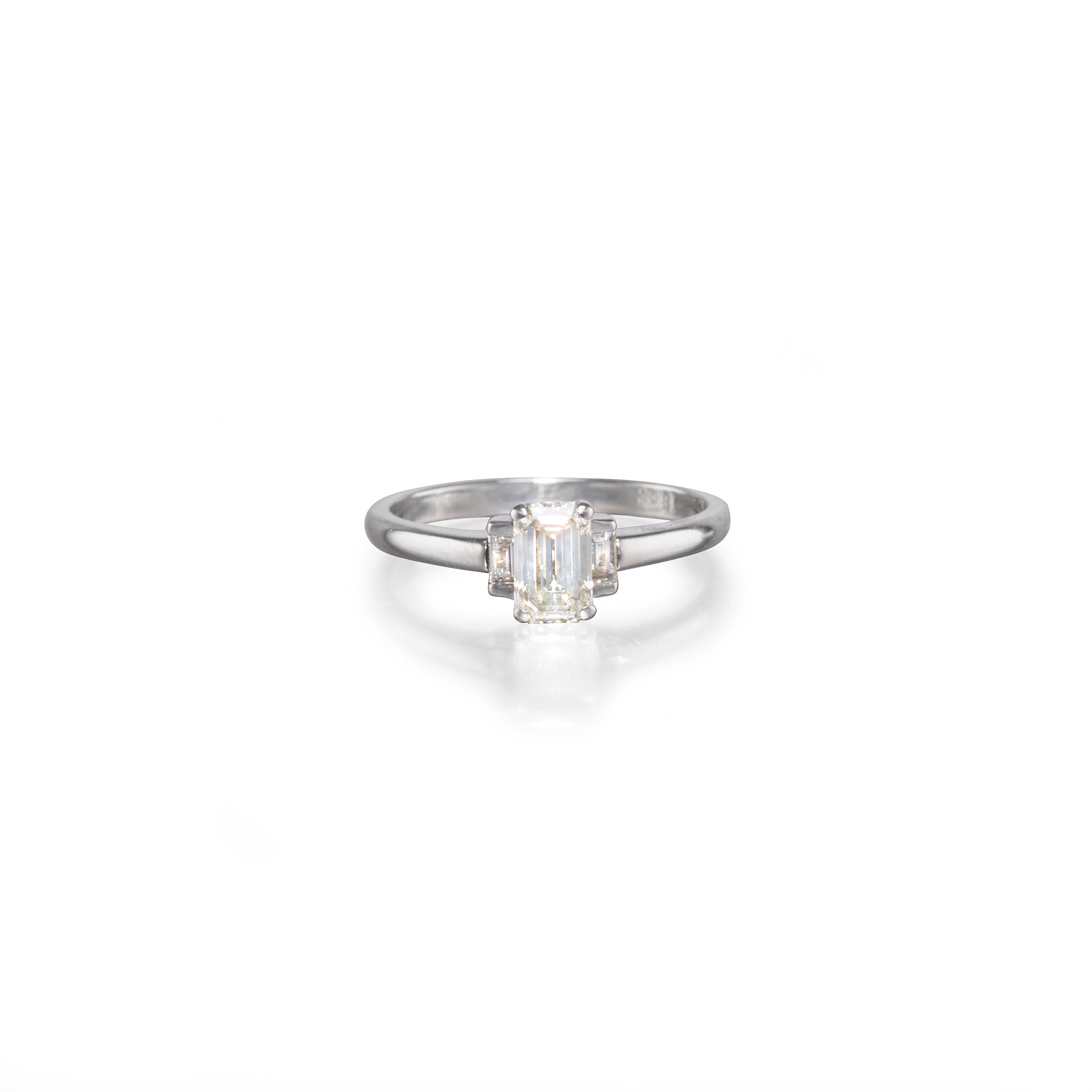 Center: 1 x Emerald Cut Diamond of approx. 0.67cts M VS1-VVS