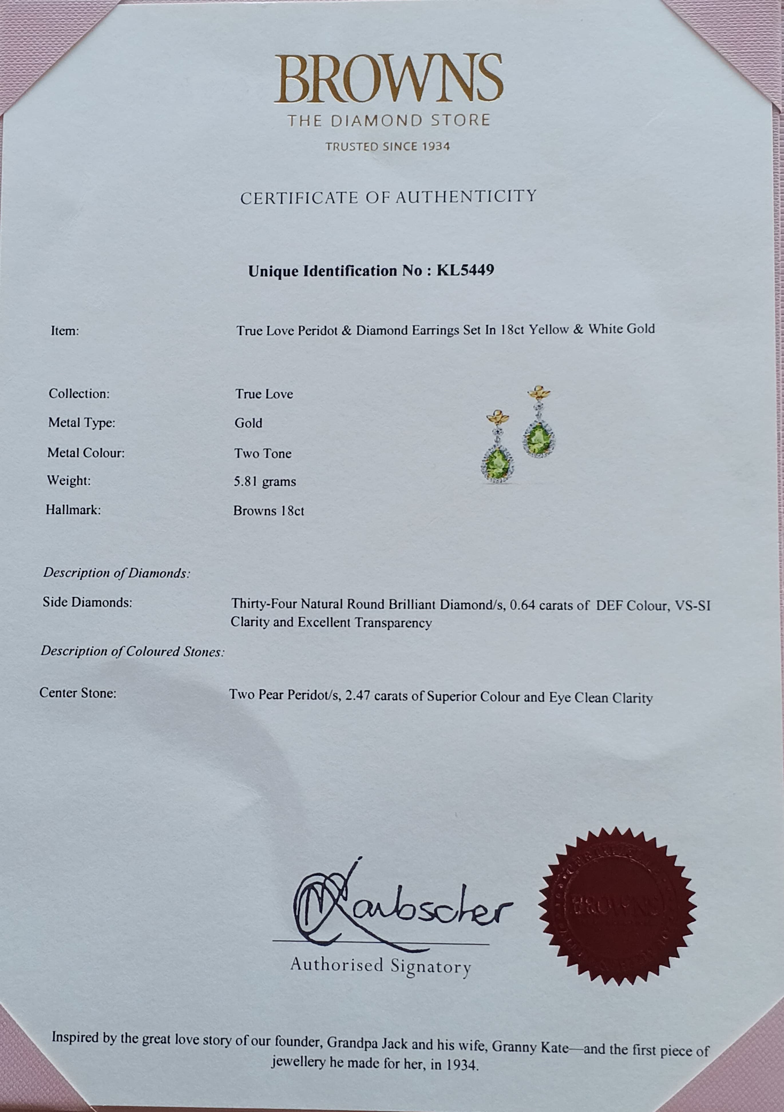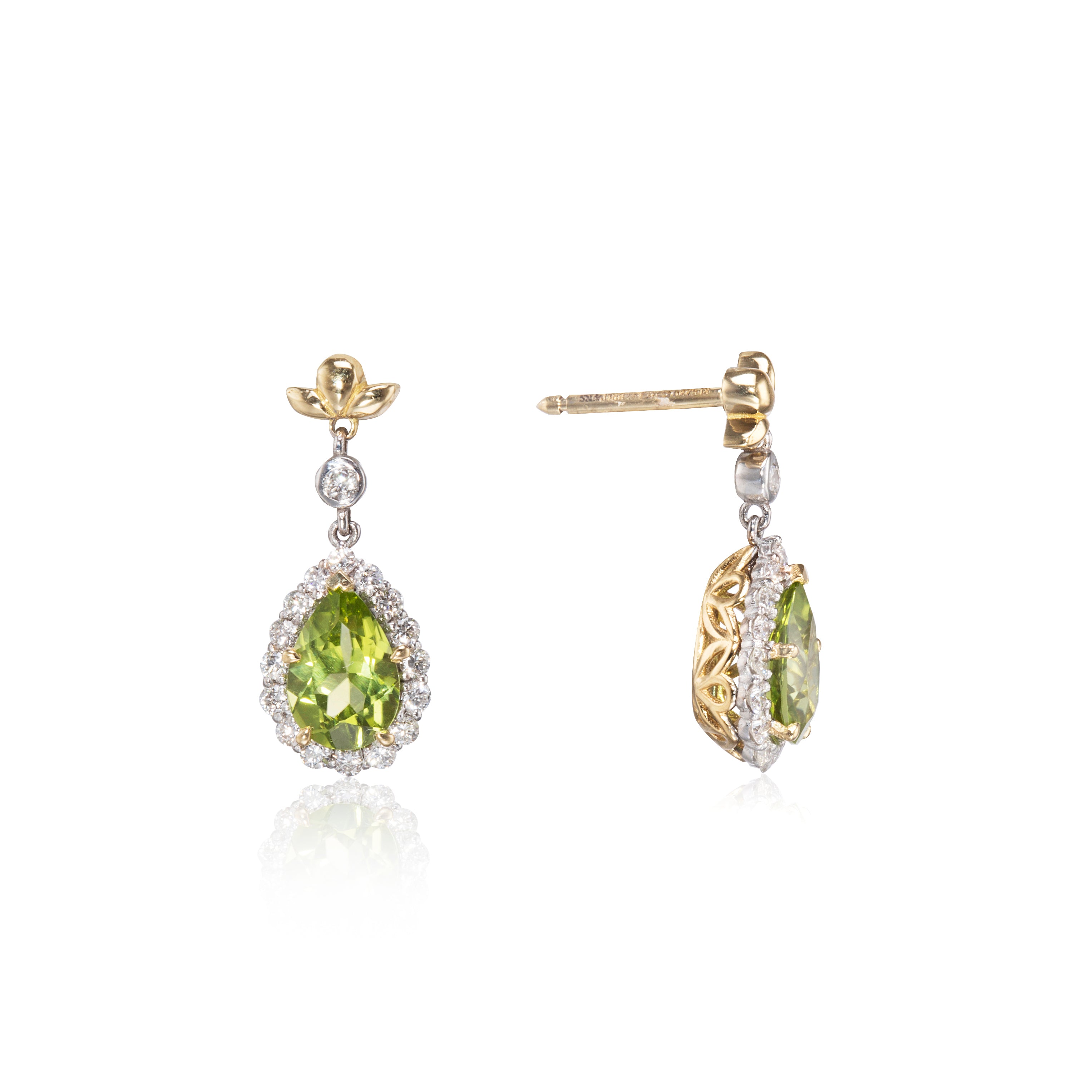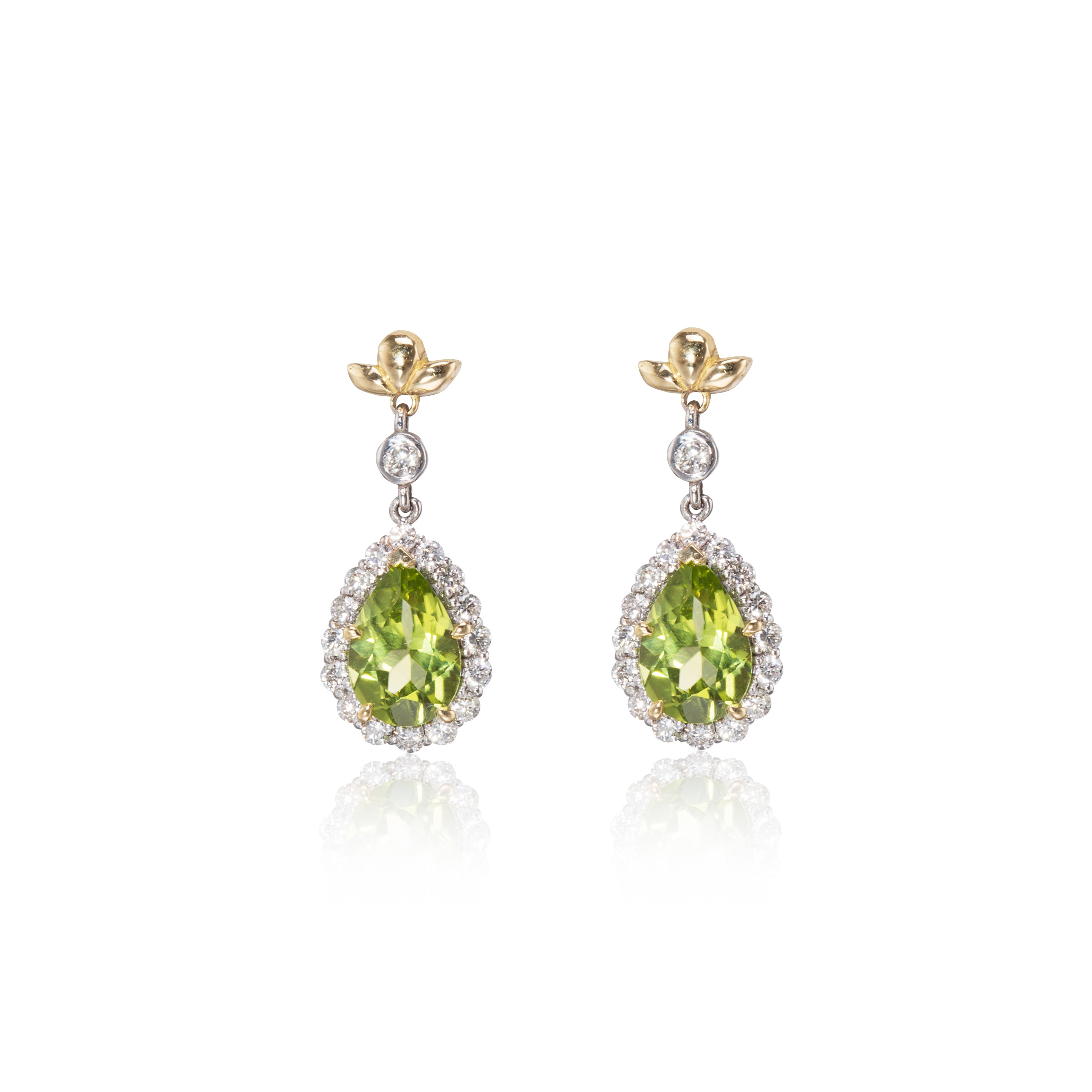 Browns True Love Collection 18ct Yellow and White Gold Peridot and Diamond Earrings each set with: