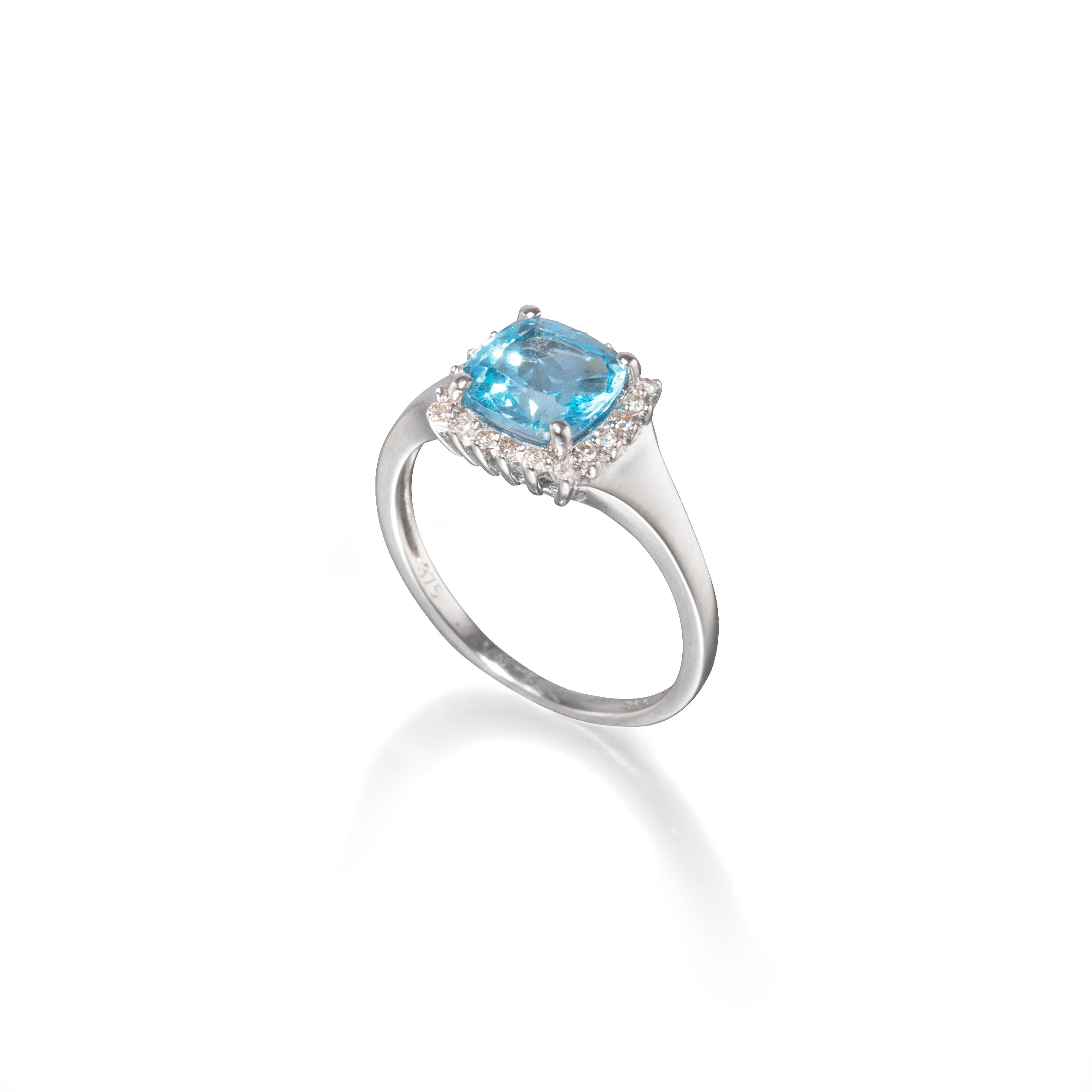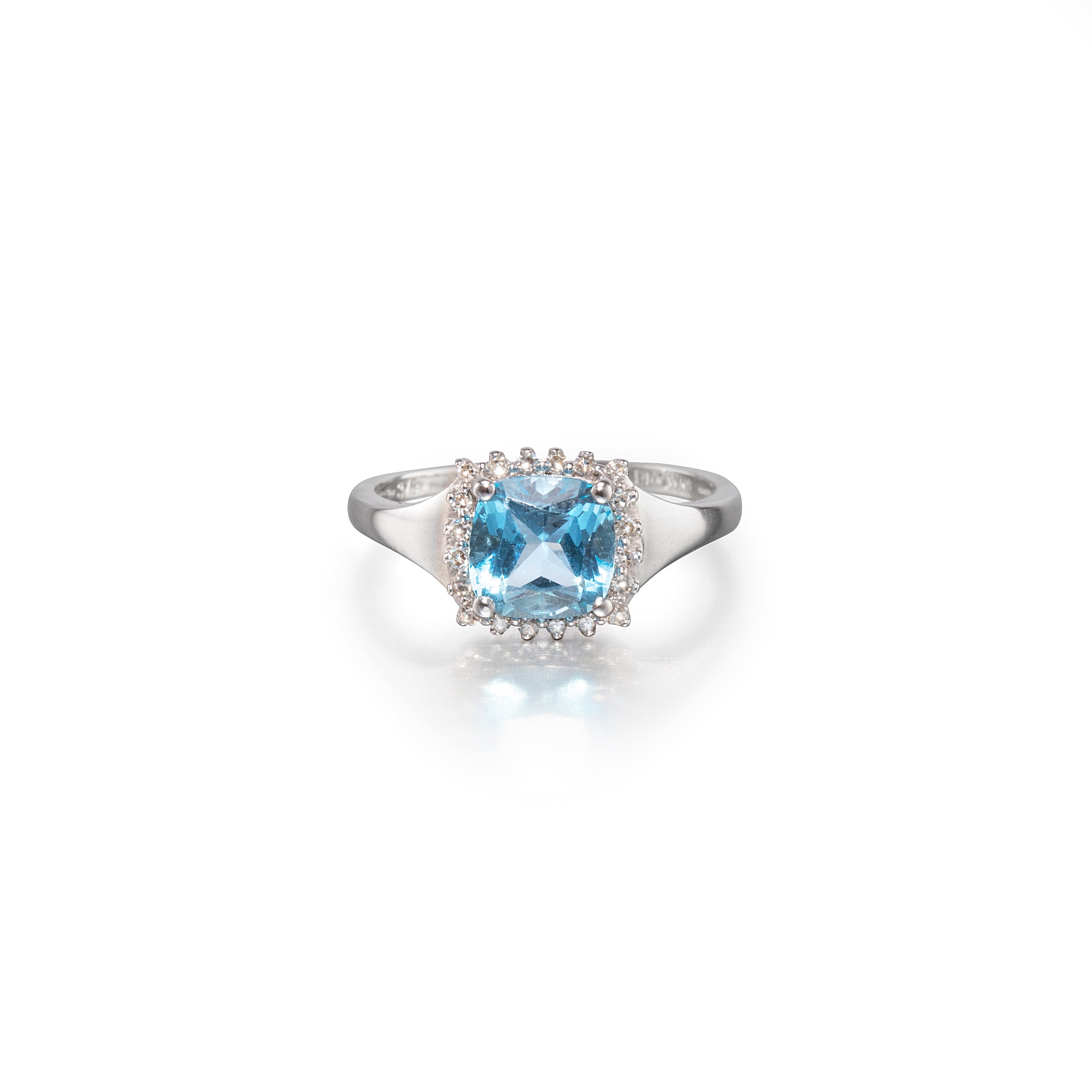 Browns 9ct White Gold Cushion Cut Topaz Halo Ring set with: